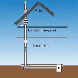 A vent fan is placed in line with the piping on the exterior of the home (or in the attic) to create negative air pressure under the floor slab. The radon and other soil gases are then drawn from beneath the slab and into the system piping where they can be vented safely outside. In many cases, this piping can be run through the home (garage, closet, attic, etc.) and roof to help conceal the system.
