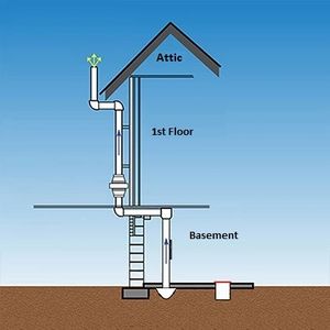 A reduction system typically consists of a schedule 40 PVC pipe connected to the soil either through a hole in a slab, via a sump lid connection, or access beneath a plastic sheet in a crawl space. Attached to the pipe is a quiet, continuously operating fan that discharges the radon outdoors.